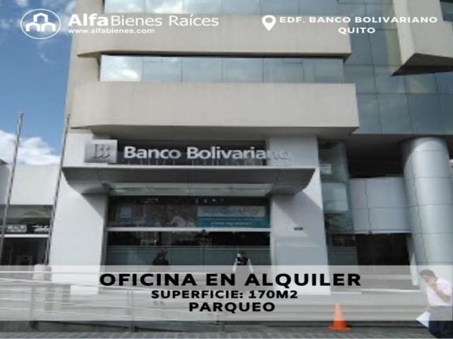 OFICINA EN ALQUILER 170 M2 - QUITO EDF. BANCO BOLIVARIANO