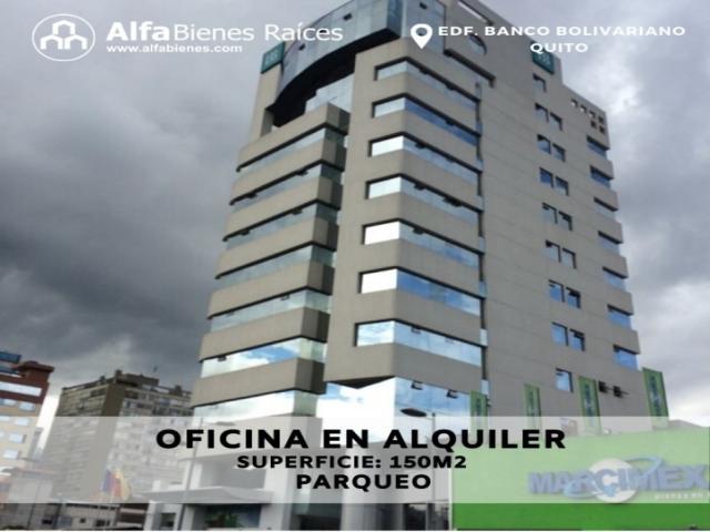 OFICINA EN ALQUILER 150 M2 - QUITO EDF. BANCO BOLIVARIANO